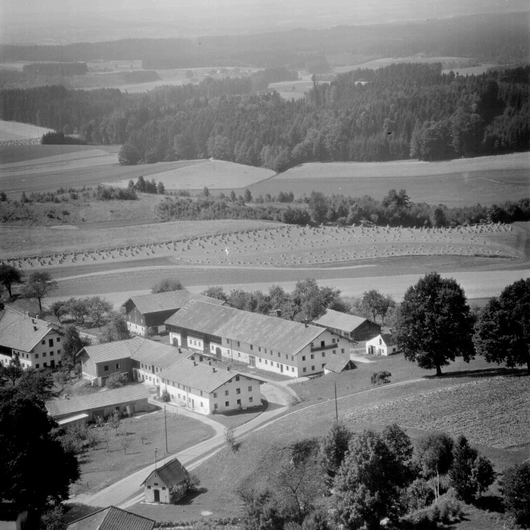 Die hier gezeigten Bilder (Luftaufnahmen) wurden in den Jahren 1957 und 1958 aufgenommen und von der Gemeinde Obing erworben. Der bzw. die Urheber sind nicht mehr feststellbar.